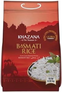 Khazana's Authentic Ultra Long Sella Parboiled Basmati Rice stands out with its extra-long grains, sourced from the Himalayan region, known for producing high-quality basmati rice. The rice is aged for several months, enhancing its nutty aroma and flavor, which many appreciate for authentic Indian dishes. The parboiled (Sella) process gives the rice a slightly firmer texture after cooking compared to regular basmati, which can be a plus if you prefer grains that stay separate and fluffy. The rice is white in color with a clean, bright appearance typical of premium basmati varieties. It is non-GMO, gluten-free, and cholesterol-free, making it a healthy choice for those mindful of dietary restrictions.