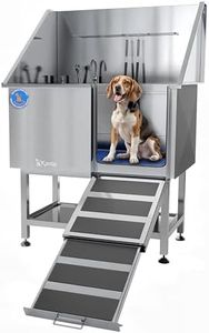The DWVO Professional Dog Bathing Station is a robust and versatile option for dog grooming, suitable for large, medium, and small pets. Its size, 50 inches in length, offers ample space for comfortable grooming. Made from durable 304 stainless steel, it promises longevity and resistance to corrosion, ensuring reliable use over the years. The one-piece welded design adds to its sturdiness.